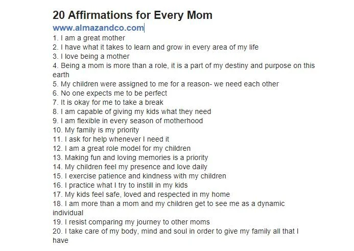Today, as a mother, having a set of positive affirmations to speak over my current season is vital. We all know that this parenting thing comes with No manuals... but the most important thing we can do on this journey is practice positive self talk and form habits that will give us the strength and courage to continue growing and learning.